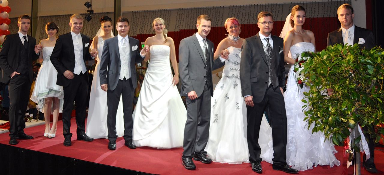 Mit dabei sind natürlich Anbieter von Hochzeits- und Festmode, aber auch Schmuck, Blumendekorationen, Hochzeitstorten, Frisuren, Catering, Make up, Nägel, Reisen und Hochzeitsautos werden präsentiert. Fotografen sind ebenfalls mit von der Partie.
