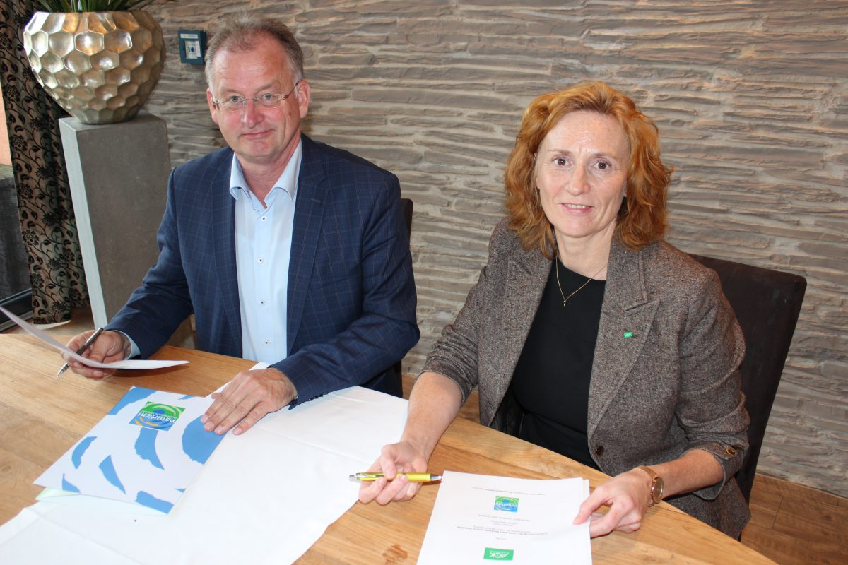 Heiko Kärger und Andrea Löwe waren sich darin einig, dass die Vertragsunterzeichnung beim Führungskräfteseminar der Kreisverwaltung zum Thema „Gesundes Führen und Kommunikation“ der passende Rahmen für die Vertragsunterzeichnung war. Denn die Gesundheit der Mitarbeiter fängt mit gesundem Führen an.