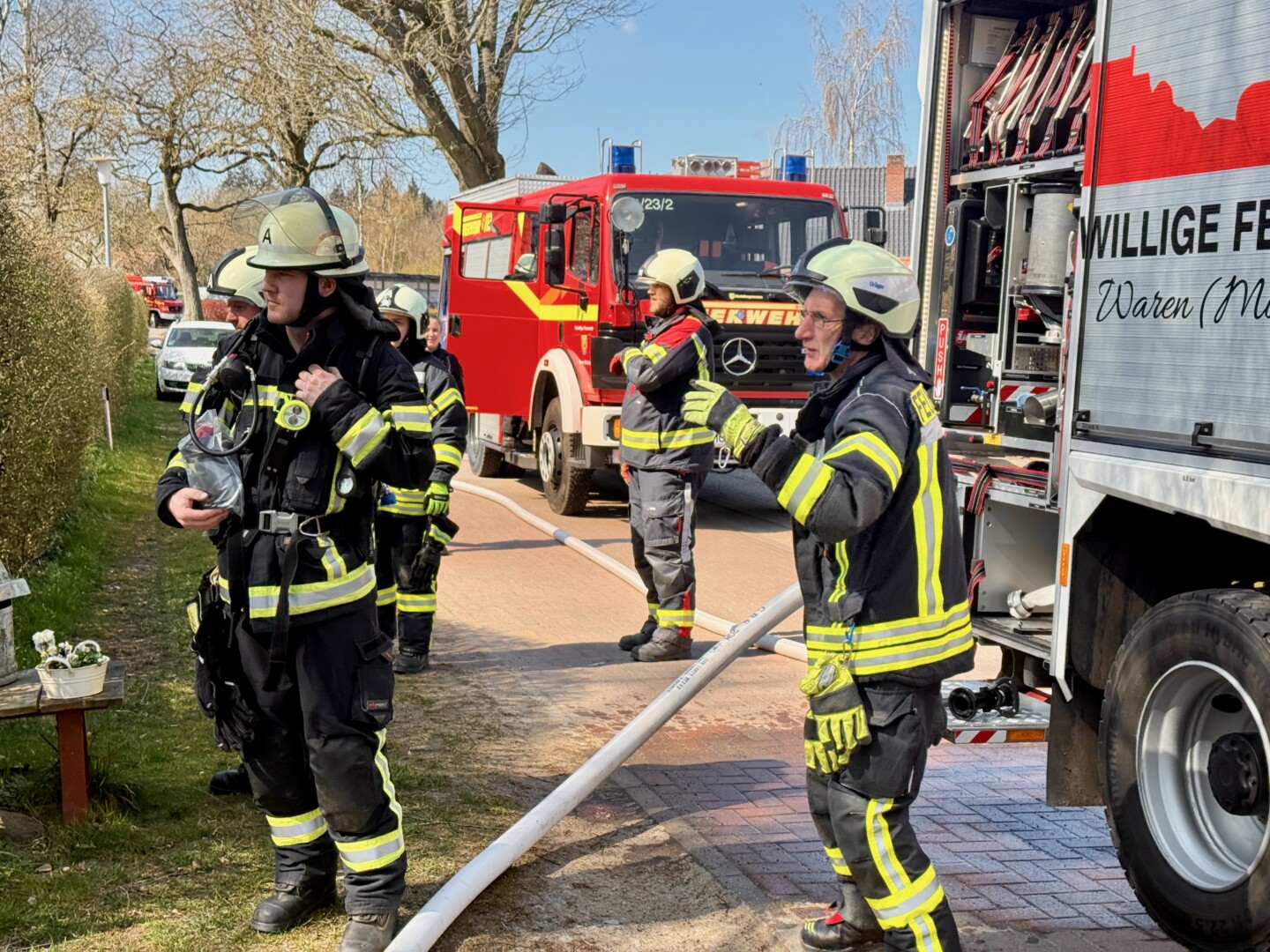 Für Warens Feuerwehr war in diesem Jahr übrigens schon Einsatz Nummer 60 – 13 mehr als im gleichen Zeitraum des vergangenen Jahres. Und es war für sie heute schon der zweite Einsatz, denn am Vormittag musste die Kameraden zur Hauptfiliale der Müritz-Sparkasse ausrücken, weil die Brandmeldeanlage Alarm geschlagen hatte. Zum Glück ein Fehlalarm – ausgelöst durch Bauarbeiten.