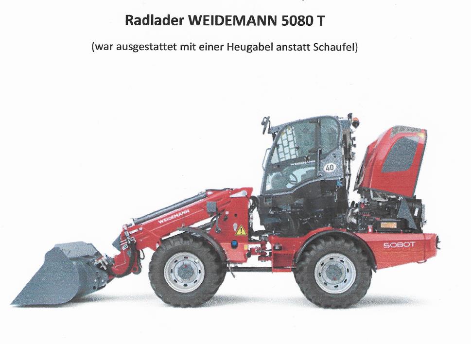 Nach bisherigen Erkenntnissen entwendeten bislang unbekannte Täter den verschlossenen Radlader der Marke Weidemann vom Typ Hoflader 5080 T von einem Acker bei Sophienhof. Der Radlader des Baujahres 2016 ist rot und mit einer Heugabel ausgestattet. Der Schaden beläuft sich auf ca. 40.000 Euro.