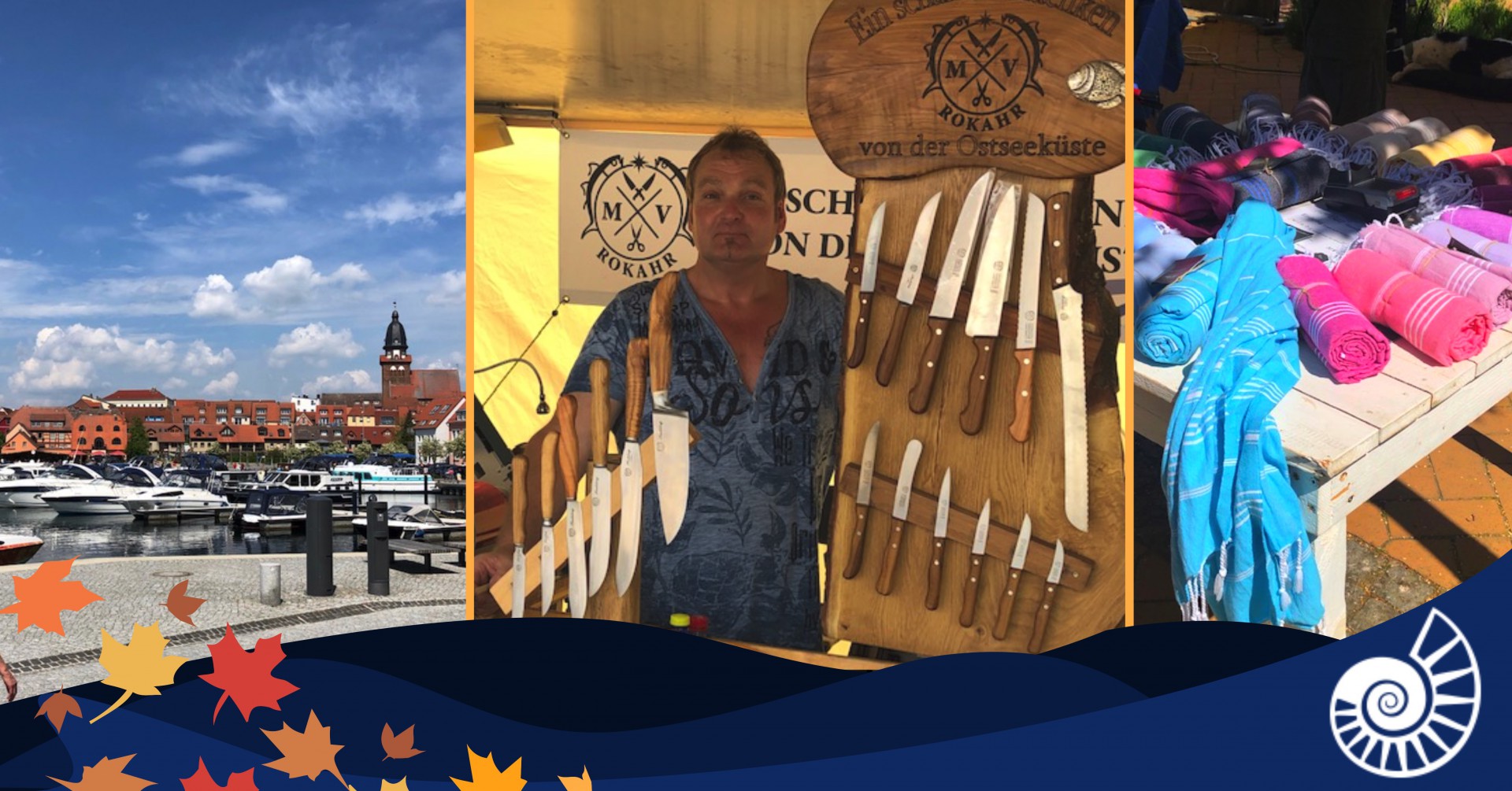 Passend zum Herbst finden die Besucher viele neue Deko-Elemente. Der scharfe Klaus schleift die stumpfen Messer der Gäste vor Ort und bietet seine handgefertigten Messer, Made in M-V, an.