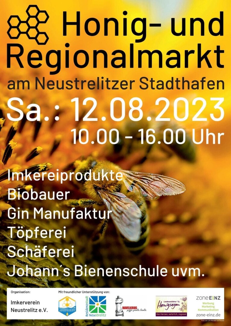 Nach dem großen Zuspruch in den vergangenen Jahren haben sich der Imkerverein Neustrelitz und die Stadt Neustrelitz entschlossen, auch 2023 einen Honig- und Regionalmarkt zu organisieren. Er findet rings um den Hafen am kommenden Sonnabend, 12. August, in der Zeit von 10 bis 16 Uhr statt.