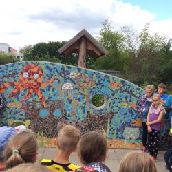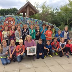 „Kinder hinterlassen Spuren“ Die Viertklässler haben sich mit einem ganz besonderen Geschenk von ihrem Hort in Waren-West verabschiedet: Sie gestalteten ein tolles Wandmosaik auf dem Schulhof.