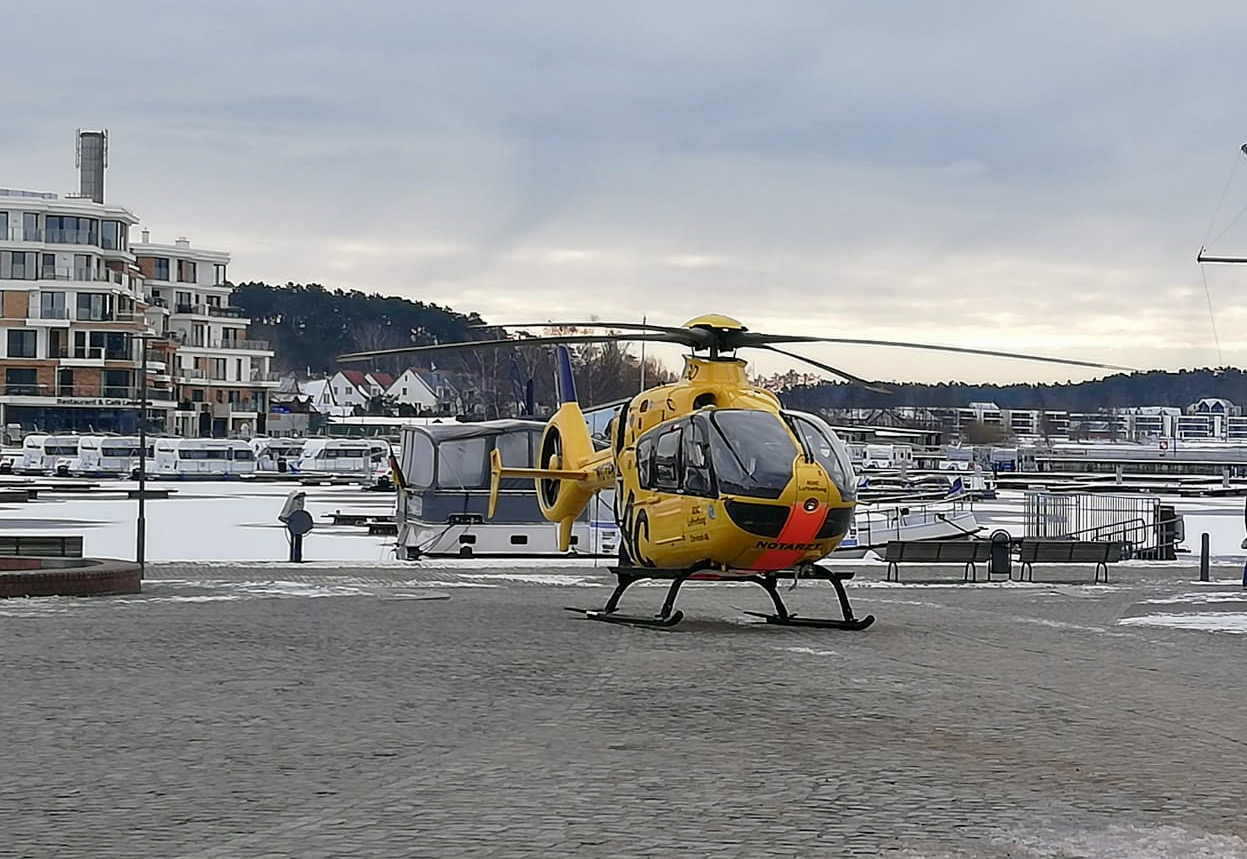 Manchmal hat es auch Vorteile, wenn gerade nicht so viele Menschen unterwegs sind. So konnte dieser Rettungshubschrauber vor einigen Minuten ziemlich problemlos am Warener Hafen landen.