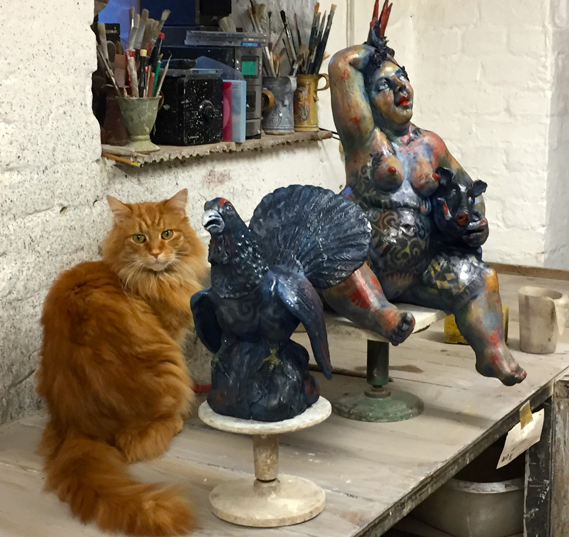 Nach dem Brennen versieht er seine Figuren und Gefäße gern mit ein paar Farbtupfern.“