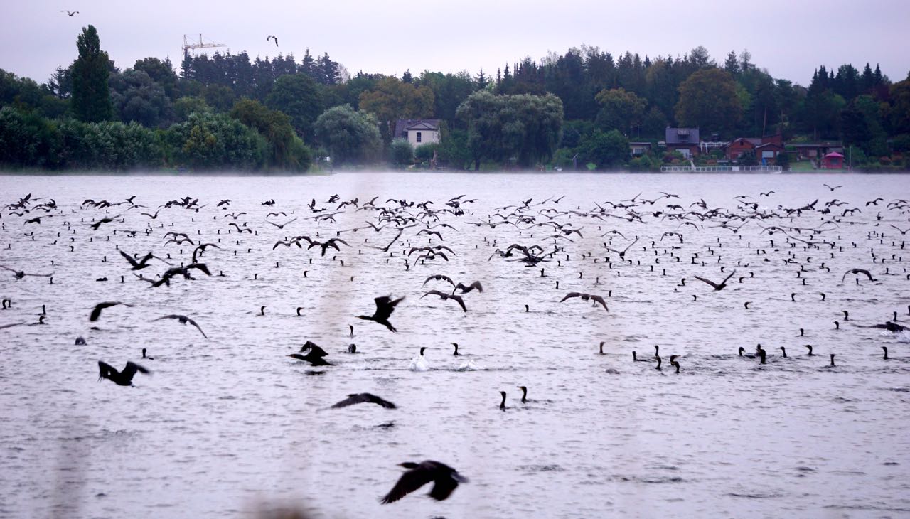 Da scheint ordentlich was zu holen zu sein: Seit einigen Tagen fischen hunderte Kormorane auf dem Tiefwarensee und lassen sich dabei nach Aussage von Anwohnern mitunter auch nicht von Booten stören, die sich nähern.