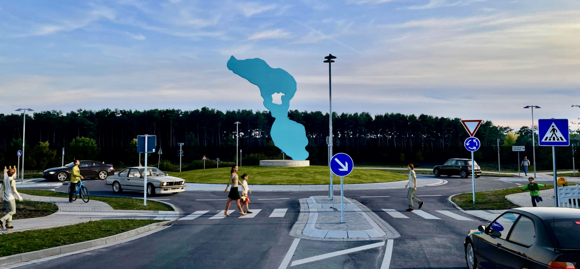 Ähnlich wie das Metallsegel vor dem „JOO!“ – das Jugendzentrum wurde von Christian Klein entworfen – möchte der Müritzer die See-Umrisse in sieben Meter hohen Stahlkörpern in die Mitte der Kreisel stellen. Das Grün ringsherum wären dann quasi die Inseln. Damit würde Waren schon auf den Straßen auf die Besonderheiten der Region aufmerksam machen und hätte weit und breit ein Alleinstellungsmerkmal.