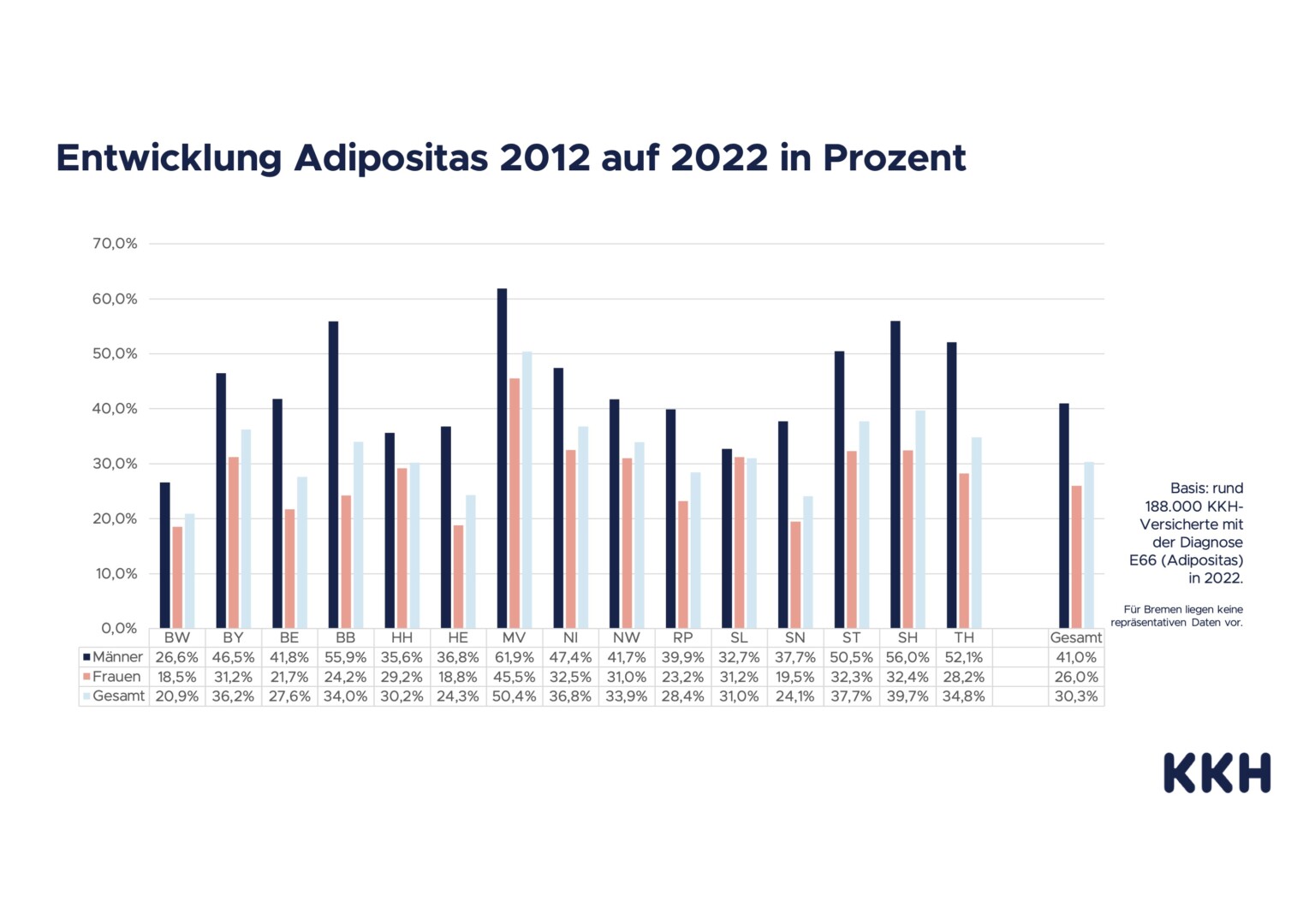 Sie ist wieder da – die Zeit der guten Vorsätze, die manch einer für das neue Jahr gefasst hat. Zu den Klassikern zählt der Wunsch, sein Gewicht zu reduzieren. Doch bei immer mehr Menschen in Mecklenburg-Vorpommern reichen ein paar Pfunde nicht aus. Das zeigt eine Datenerhebung der KKH Kaufmännische Krankenkasse. Demnach wurde bei jedem Siebten in MV Adipositas diagnostiziert, darunter bei mehr Frauen als Männern. Insgesamt hat sich der Anteil der von Adipositas Betroffenen von 2012 auf 2022 um mehr als 50 Prozent erhöht (plus 61,9 Prozent bei Männern zu plus 45,5 Prozent bei Frauen). Damit hat Mecklenburg-Vorpommern im Ländervergleich den höchsten Anstieg und belegt somit den traurigen ersten Platz.