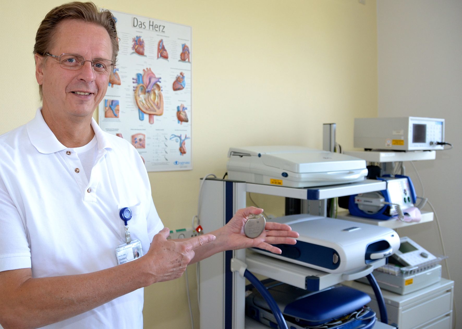 „Für uns Kardiologen war diese Situation stets ein Dilemma: Was dem Herzen half, war bei einem späteren Notfall, wie beispielsweise einem Schlaganfall, kontraproduktiv. Wichtige radiologische Untersuchungen zur Frühdiagnostik im MRT konnten nicht stattfinden, da Betroffene einen Defibrillator trugen“ erklärt Dr. Christian Beythien, Facharzt für Kardiologe und Leitender Oberarzt in der Klinik für Innere Medizin. 2011 wurden im Rahmen einer europaweiten Studie die MRT-fähigen Defibrillatoren erstmals getestet. „Die Datenlage ist mittlerweile so sicher, dass die MRT-fähigen Defibrillatoren nun auch in Waren zum Einsatz kommen und wir unseren Herzpatienten somit eine abgesicherte Behandlung auf Basis modernster Medizintechnik bieten können“ freut sich Dr. Beythien.