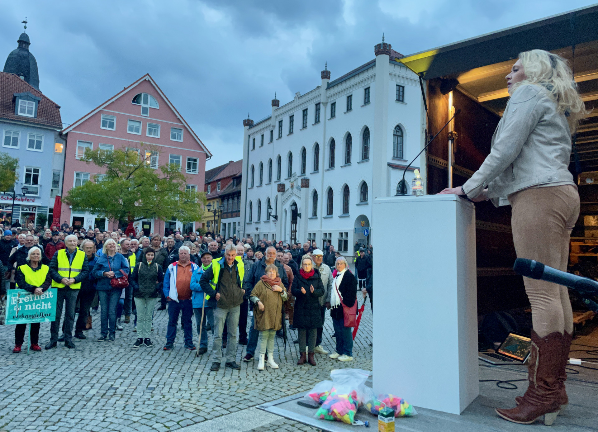 Sie konnte das „Volk“ mit ihrer emotionsgeladenen Rede begeistern, aber sie sorgte zugleich für einen Eklat: Doreen Peter sprach am Montag auf der Demo der Initiative „Menschlich-Stark-Miteinander“ und zog unter anderem einen Vergleich mit dem KZ-Arzt Josef Mengele. Widerspruch gab es auf der Demo nicht (WsM berichtete). Aber viele Diskussionen zum Auftritt der Friedländer Bestatterin im Nachhinein. Die Organisatoren der Demo haben sich jetzt in einer Pressemitteilung von jeglicher Form des Extremismus distanziert.