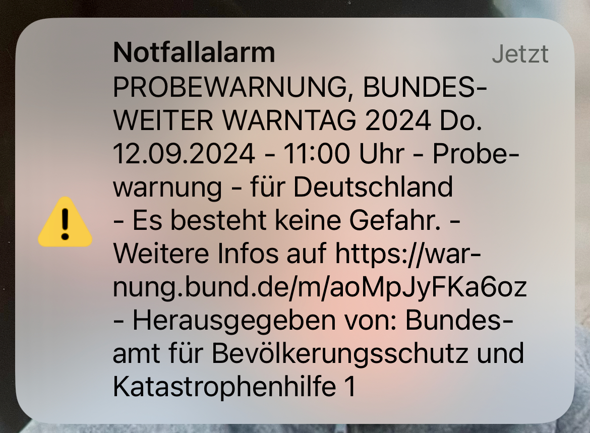 Auf meinem Handy ging’s Punkt 11 Uhr los. Danke über die Info zur warntag-umfrage; habe sie soeben beantwortet.
