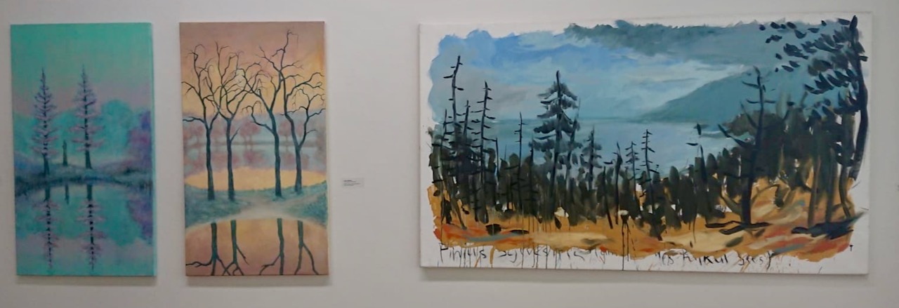 Die vielen auch großformatigen Gemälde in der Kunstsammlung zeigen auch, was von Natur und Landschaft bleibe, wenn der Mensch seine Verwurzelung mit ihr verliert, erklärt Kunstsammlungsleiterin Merete Cobarg. Die Darstellungsweise variiert von „natürlich“ bis „abstrakt“. So hat der Österreicher Lukas Pusch die Pflanzenwelt Sibiriens festgehalten, Denise Richardt aus Berlin malte „Gethsemane“, ein anderer Künstler einen brennenden Wald und wieder ein anderer riesige Wellen.