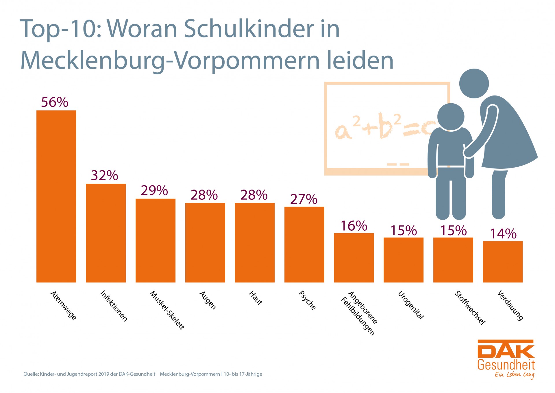 Der aktuelle Kinder- und Jugendreport der DAK-Gesundheit für Mecklenburg-Vorpommern untersucht umfassend die Behandlungsdaten der Jahre 2016 und 2017 von mehr als 24.200 minderjährigen Versicherten der DAK-Gesundheit in Mecklenburg-Vorpommern. Die Analysen sind am renommierten Lehrstuhl für „Gesundheitsökonomie und Gesundheitsmanagement“ der Universität Bielefeld gelaufen.