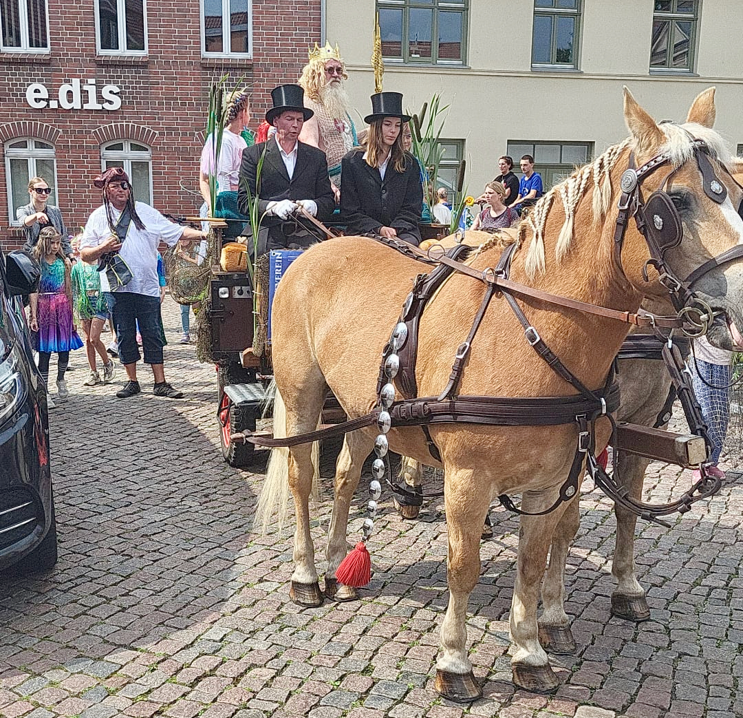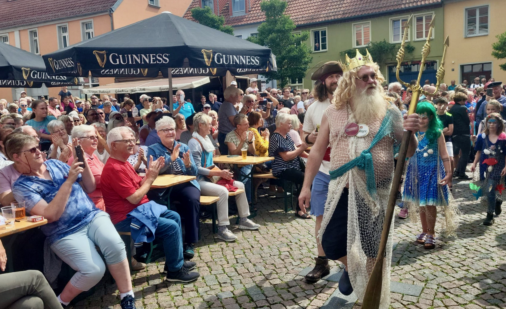 Die große Party in der kleinen, bunten Müritzstadt ist eröffnet! Mit der traditionellen Schlüsselübergabe an Neptun – alias Steffen Steinbeck – an Bürgermeister Matthias Radtke ist das Seefest jetzt bereits in vollem Gange.