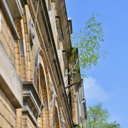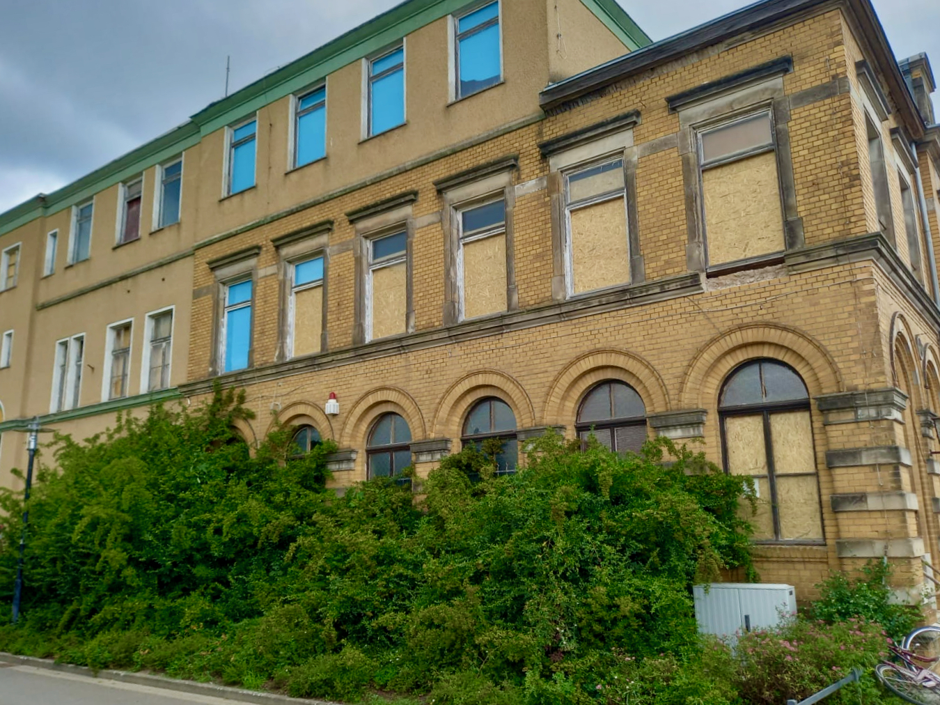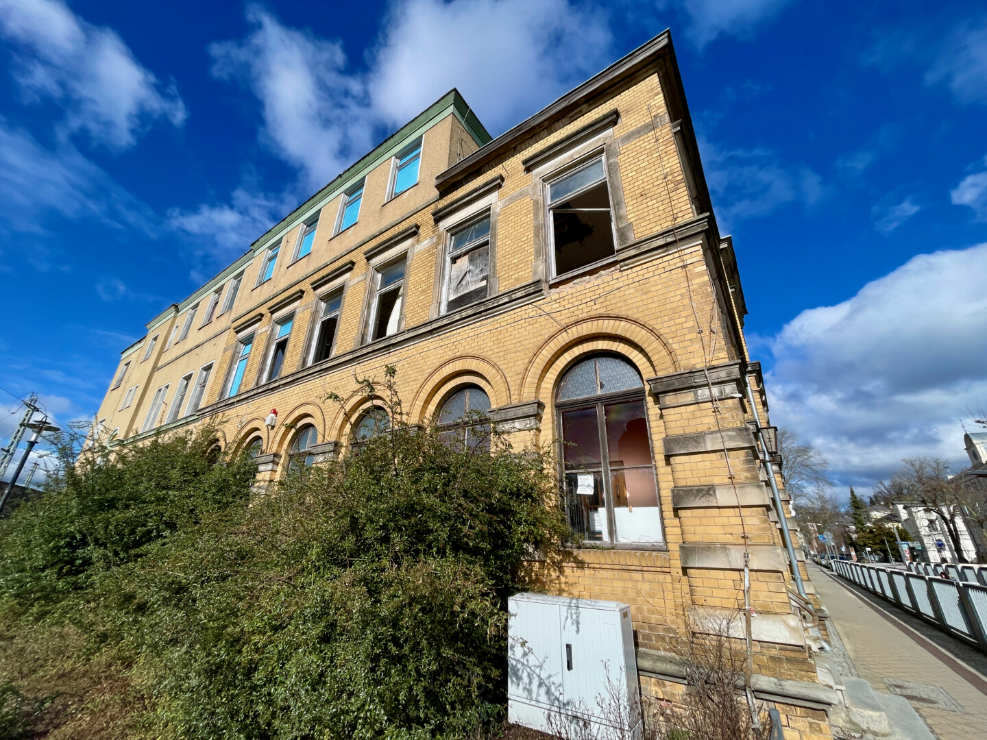An der alten Post gingen im Laufe der Jahre immer mehr Scheiben zu Bruch, Bäume wuchsen aus dem Mauerwerk und sogar Betonstücke fielen herab. Und das unmittelbar an Gehwegen. Jetzt sind zumindest die Scheiben des Gebäudes gesichert worden. Doch auch das nicht unbedingt freiwillig.