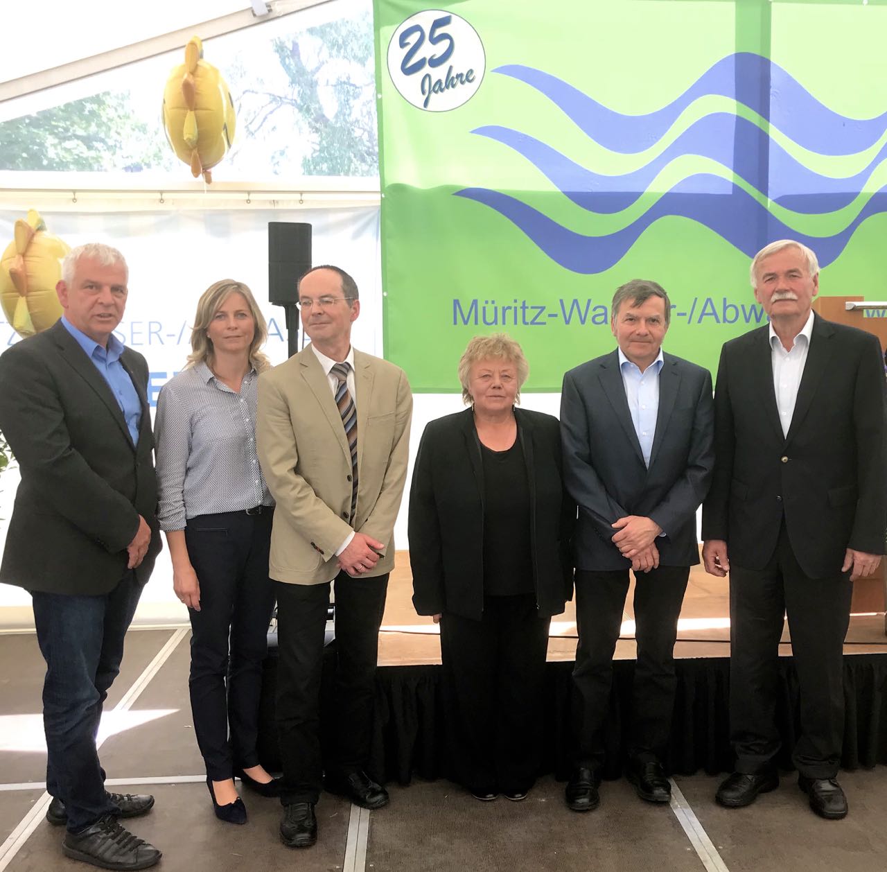 Zahlreiche Politiker, Vertreter benachbarter Abwasserverbände und Partner sind gestern der Einladung zum 25.Geburtstag des Müritz-Wasser-/Abwasserzweckverbandes gefolgt. Er wurde am 24. Mai 1993 mit damals 35 Mitgliedern gegründet. Nach mehreren Fusionen sind es heute noch 19 – aber kein Mitglied ist in dieser Zeit ausgetreten. Die Verbandsmitglieder sind das Amt Seenlandschaft Waren, das Amt Penzliner Land und die Stadt Waren (Müritz) mit den jeweils zugehörigen Ortsteilen.