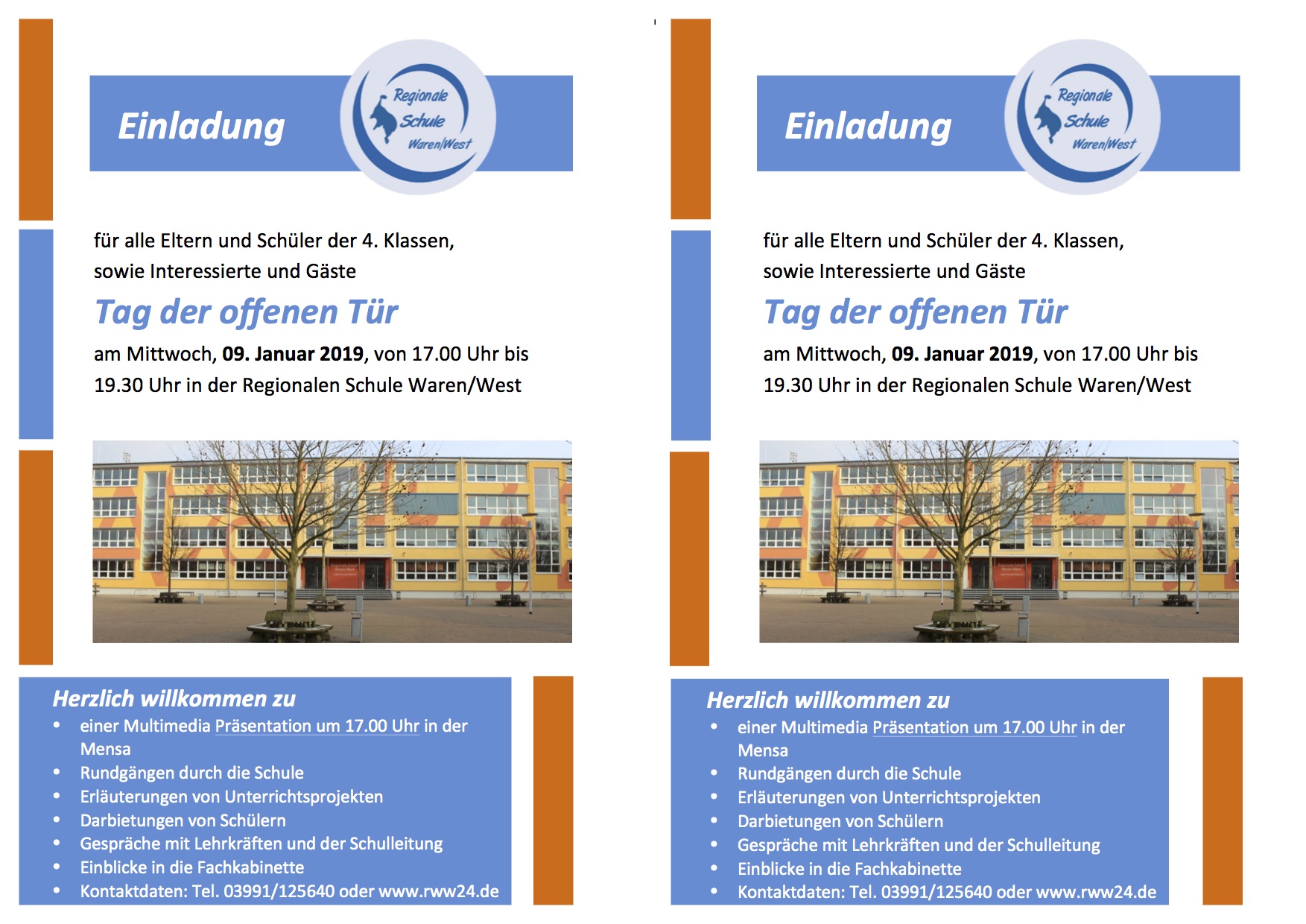 Die Regionale Schule Waren/West lädt wieder zum Tag der offenen Tür, der besonders interessant für Eltern und Schüler der Warener Viertklässler sein dürfte.