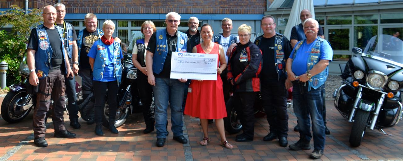 Mit zu denen, die sich ebenso jedes Jahr aufs Neue nicht nur finanziell engagieren, sondern auch persönlich in die Freizeitgestaltung des Camps mit einbringen, gehören die „Blue Knights“ und die „Flaming Stars“. Mitte Juni fuhren sie mit ihren „heißen Öfen“ am MediClin Müritz-Klinikum vor, um den Spendenscheck für das Camp über 500 Euro zu übergeben.