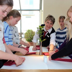 Nach einem kurzweiligen theoretischen Unterricht mit „Lehrerin“ und Hoteldirektorin Kati Strasen, durften sich die Kids selbst Cocktails mixen, gestalteten Menü-Karten, lernten Servietten-Kniffe, bereiteten sich in der Küche mit Chefkoch Hendrik Türk ihre drei Gänge selbst zu und deckten anschließend ganz professionell den Tisch.