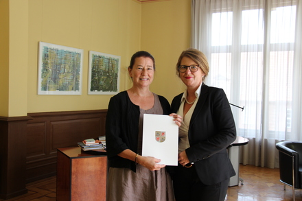 Bei der Übergabe der Ernennungsurkunde wünscht Ministerin Katy Hoffmeister ihr viel Erfolg für die Fortsetzung ihrer bisher so geachteten Arbeit Im Juni hatte der Landtag Anne Drescher für eine weitere Amtszeit von fünf Jahren zur Landesbeauftragten für die Stasiunterlagen einstimmig gewählt. Heute überreichte Justizministerin Katy Hoffmeister ihr die Ernennungsurkunde.