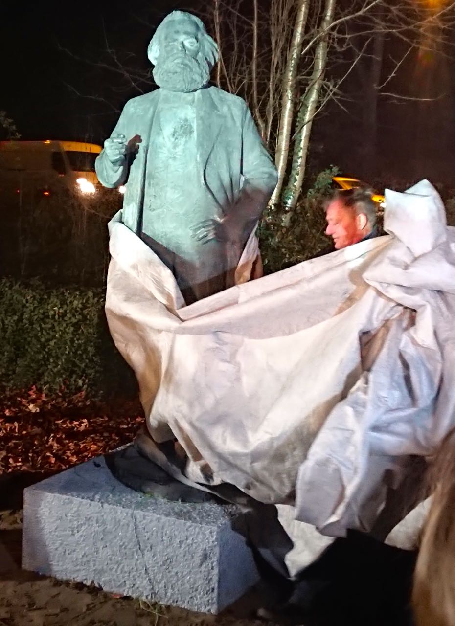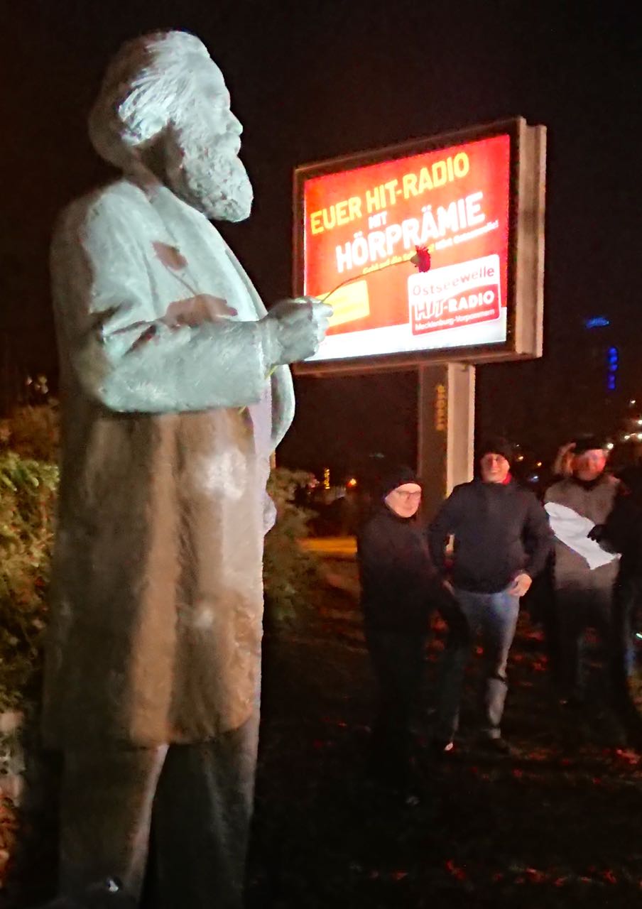 Nun steht der „Bärtige“ am Schwanenteich gleich neben dem mehrspurigen Stadtring, der noch immer Friedrich-Engels-Ring heißt. Sein Blick geht Richtung Osten, weg vom Stadtzentrum. Gleich links von Marx steht ein „Relikt des Kapitalismus“: Eine Werbetafel mit wechselnden Inhalten. Oberbürgermeister Witt ist froh, dass die Debatte um einen Standort für das Denkmal zu Ende ist. „Über die Vergangenheit und was sie bis heute bedeutet, sollte wir jedoch weiterdebattieren“, meinte Witt.