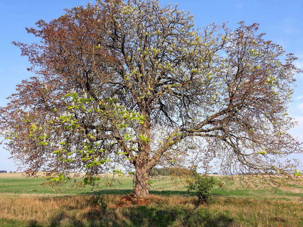 Grit Kattein hat in Ludorf eine Kastanie entdeckt, die jetzt im September nicht nur Früchte trägt, sondern auch blüht.