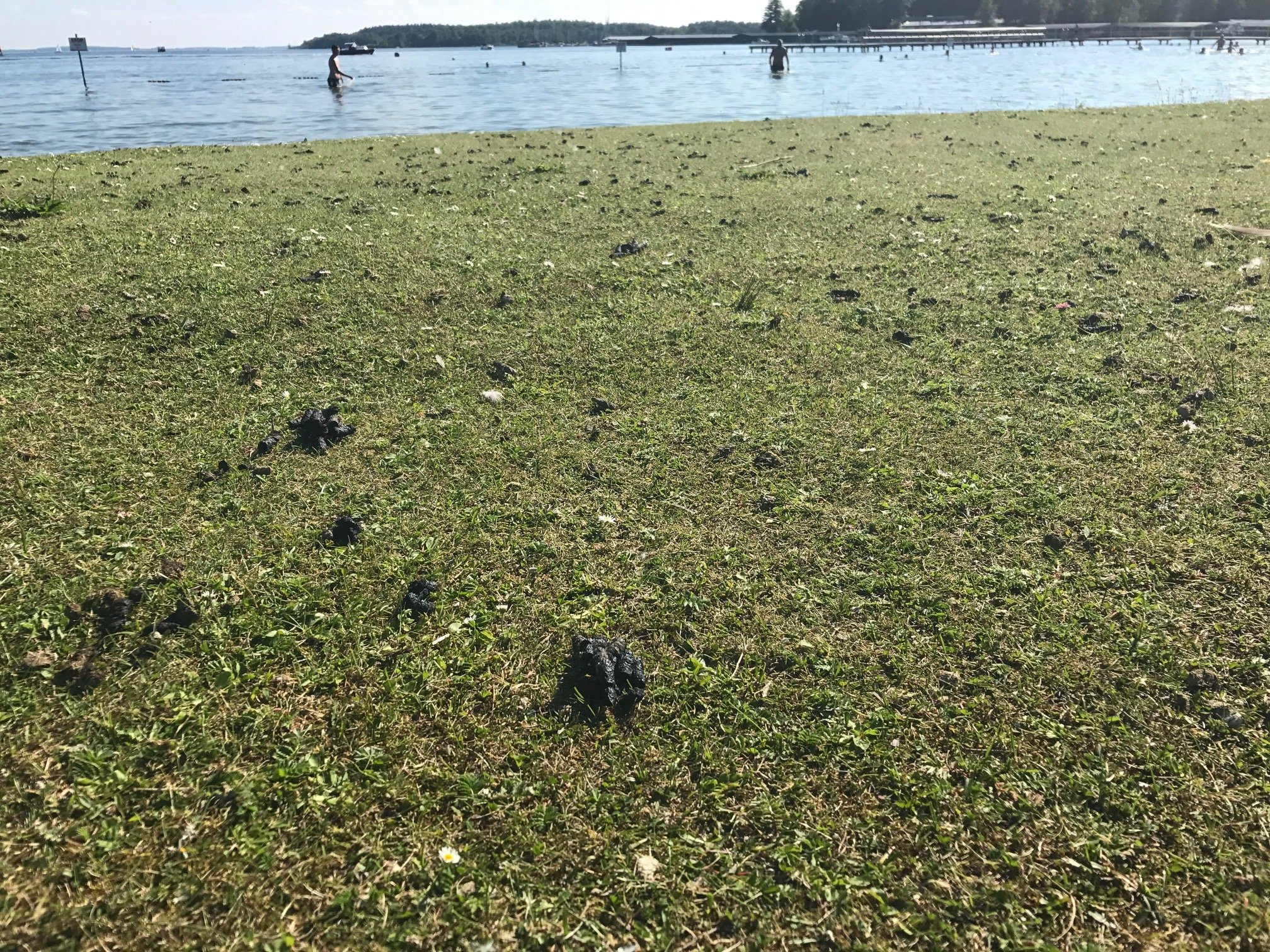 Gänsekacke, wohin das Auge reicht, kaum ein Plätzchen zum Liegen.