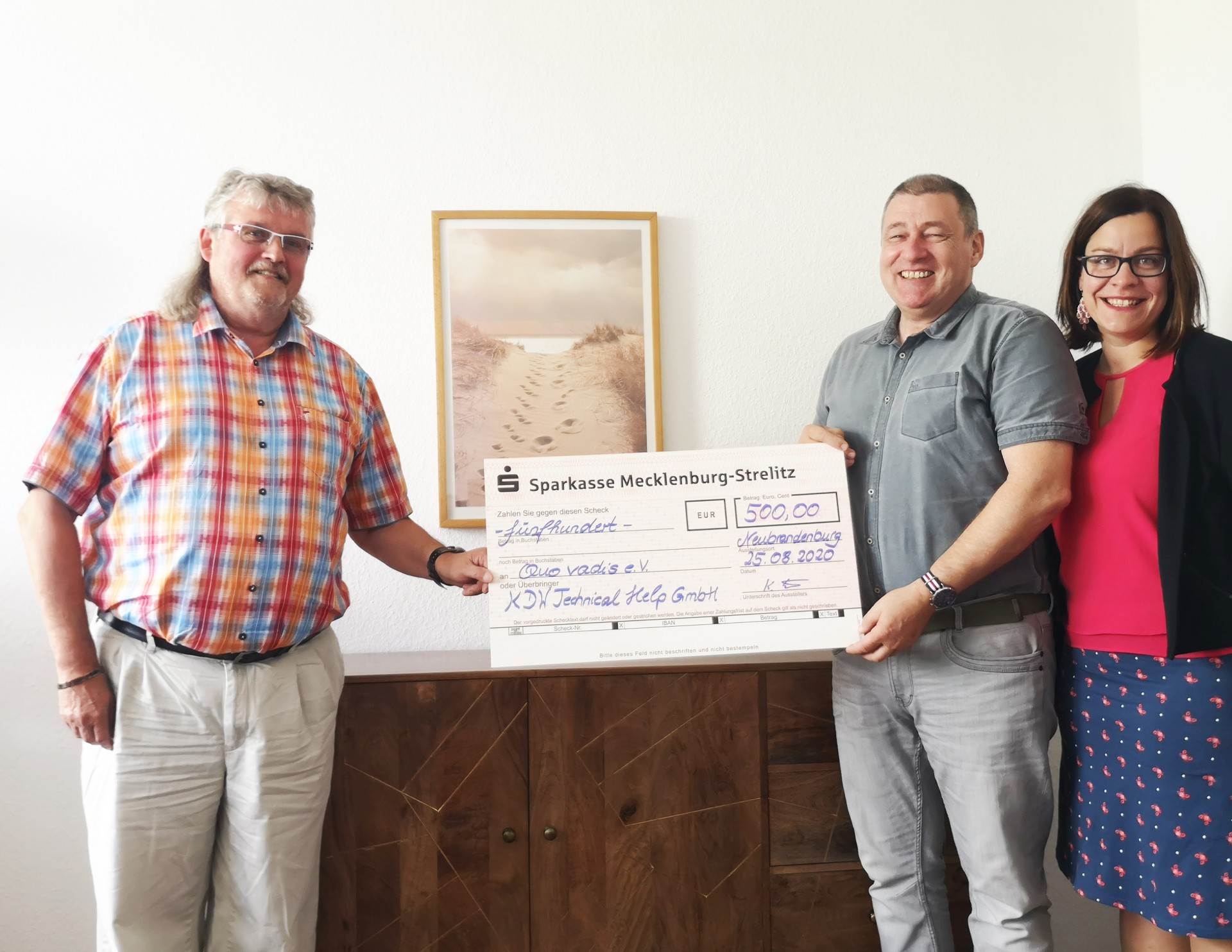 Die Spende der KDW Technical Help GmbH kam durch eine Umfrage unter den etwa 150 Mitarbeitern am Standort Neubrandenburg zustande. Dazu Standortleiter Silvio Heinze: „In den letzten Jahren haben wir öfter schon die Mitarbeiter gefragt, an wen wir etwas spenden sollen. Dabei kam eine Liste mit interessanten Vereinen aus der Region heraus. Ich bin sehr froh, dass bei der Abstimmung dieses Mal ein Verein mit einem schwierigeren Thema zum Zuge gekommen ist.“