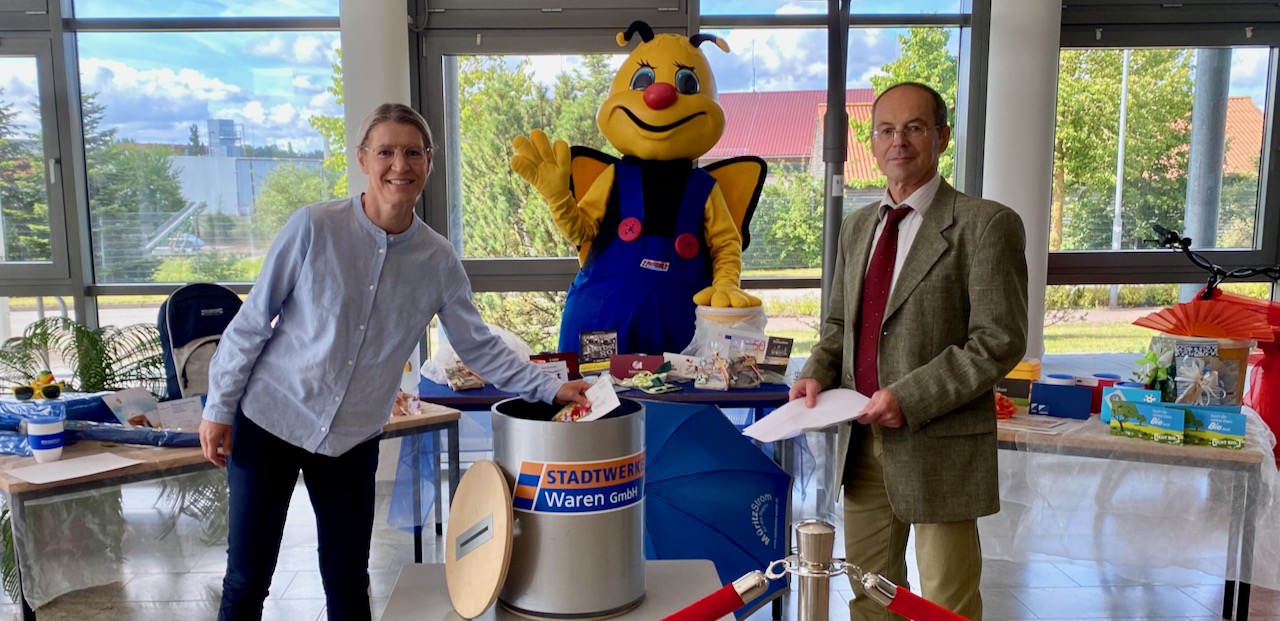 Deshalb haben sie großes Gewinnspiel organisiert – mit ingesamt 100 Preisen. Unter anderem gibt’s ein E-Bike, eine Waschmaschine und einen Rasenroboter. Gestern haben „EddyMüritzstrom“, Stadtwerke-Geschäftsführer Eckhart Jäntsch sowie Mitarbeiterin Katja Ziebell die 100 Gewinner gezogen.