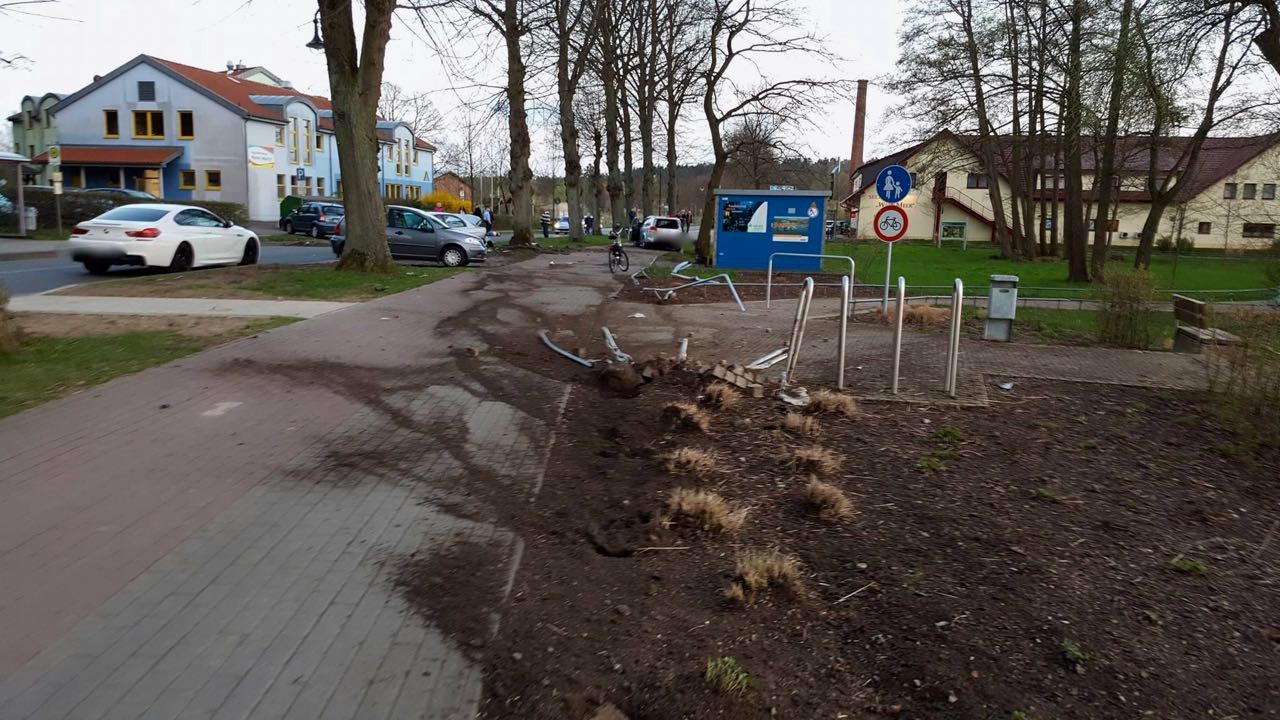 Beim Aufprall auf den Bordstein bei etwa 90 Stundenkilometern zerbersten erst die rechten Alu-Felgen, dann auch beide linken Felgen – alle Reifen waren platt. Fast manövrierunfähig raste der Wagen Richtung Müritz, aber der Fahrer zog nach links, wo er den Fußgänger erfasste. „Die Spur der Trümmer war 59 Meter lang“, sagte ein Gutachter. Tragische Bilanz: Der 67 Jahre alter Fußgänger wird rund 26 Meter durch die Luft geschleudert und stirbt sofort. Vier Autos und ein Fahrradständer sind demoliert worden. „Nur ein Zufall verhindert, dass nicht noch mehr Leute getroffen werden“, heißt das Resümee von Zeugen.
