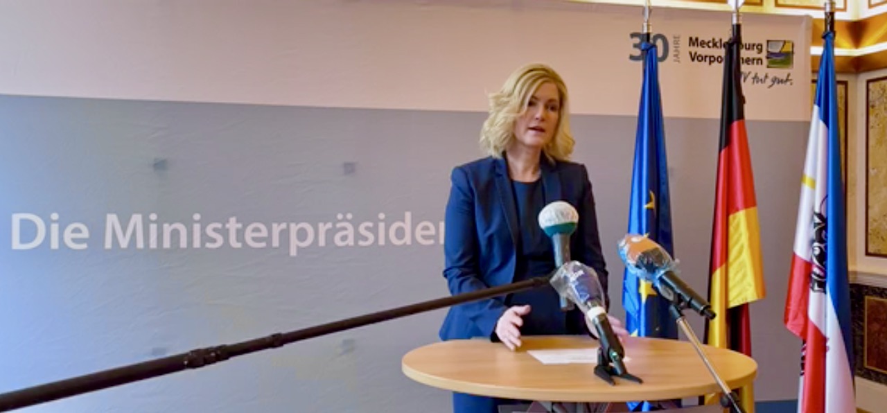 Ministerpräsidentin Manuela Schwesig aktuell in der Pressekonferenz: Alle beschlossenen Maßnahmen bleiben bis zum 19. April bestehen, also Kontaktverbot, Schließung Läden, Hotels, etc.