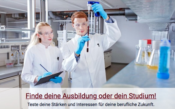 Mit dem Selbsterkundungstool können angehende Abiturienten testen, welches Studium oder welcher Ausbildungsberuf zu ihnen passt. Online werden mit Hilfe von Testverfahren Fragen zu Fähigkeiten, Stärken und Interessen gestellt. Auf Basis dieser Eingaben ermittelt das Tool passende Ausbildungsberufe und Studienfelder. Wer zudem wissen will, wie es nach einer abgeschlossenen Ausbildung mit der Karriere weitergehen kann, erhält auch dazu passende Vorschläge.