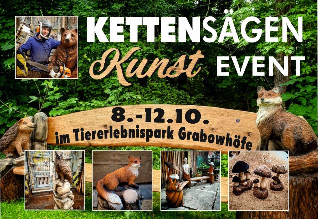 Das hört sich spannend an: Zwischen dem morgigen Sonnabend, 8. Oktober und dem 12. Oktober wird im wunderschönen Tiererlebnispark Müritz in Grabowhöfe ein „Kettensägen-Kunstevent“ stattfinden. Hierbei wird ein Virtuose an der Kettensäge aus rustikalen Eichenstämmen filigrane Figuren, Sitzbänke uvw. Kunstobjekte erst sägen und dann schnitzen.