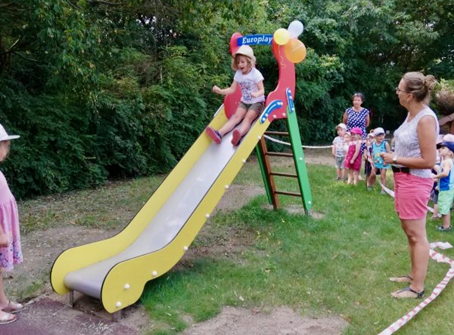 Aufgrund des aktuellen Pandemiegeschehens war es aber erst jetzt möglich, die neu aufgebaute Rutsche einzuweihen.