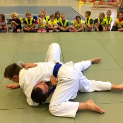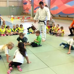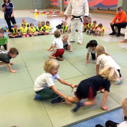 Jeder kleiner Sportler bekam eine Urkunde und eine Medaille mit dem Maskottchen Wuff-Paff, dass von Kindern entwickelt wurde. Aufgelockert wurde das Sportfest durch eine Judovorführung des Vereinssportlehrers des SKV, Maximilian Mayer, und Jonas Scheffler. Die gefiel den Kindern so gut, dass sie um Zugabe baten. Ganz Mutige wagten sich danach selbst auf die Judomatte.