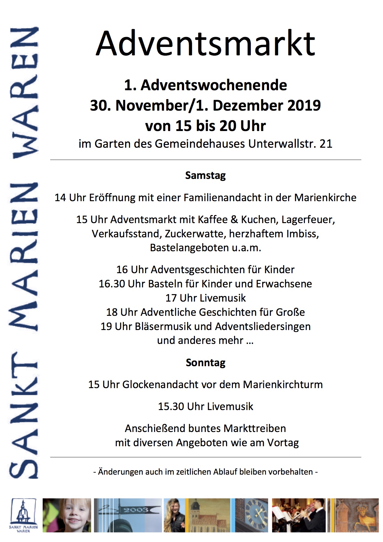 Am diesem ersten Adventswochenende lädt die St. Marienkirchengemeinde in Waren zum zweiten Mal zu einen Adventsmarkt auf das Grundstück ihres Gemeindehauses in der Unterwallstraße 21 in Waren ein. Die Erstauflage im vergangenen Jahr war ein großer Erfolg. Der Markt – der mehr von der warmen Atmosphäre offenen Feuers, lebendigen Gesprächen und stimmungsvoller Livemusik geprägt war, denn von Lärm und blinkenden Lichtern – zog vor einem Jahr sehr viele Besucher an. So soll es auch heute und morgen wieder sein.