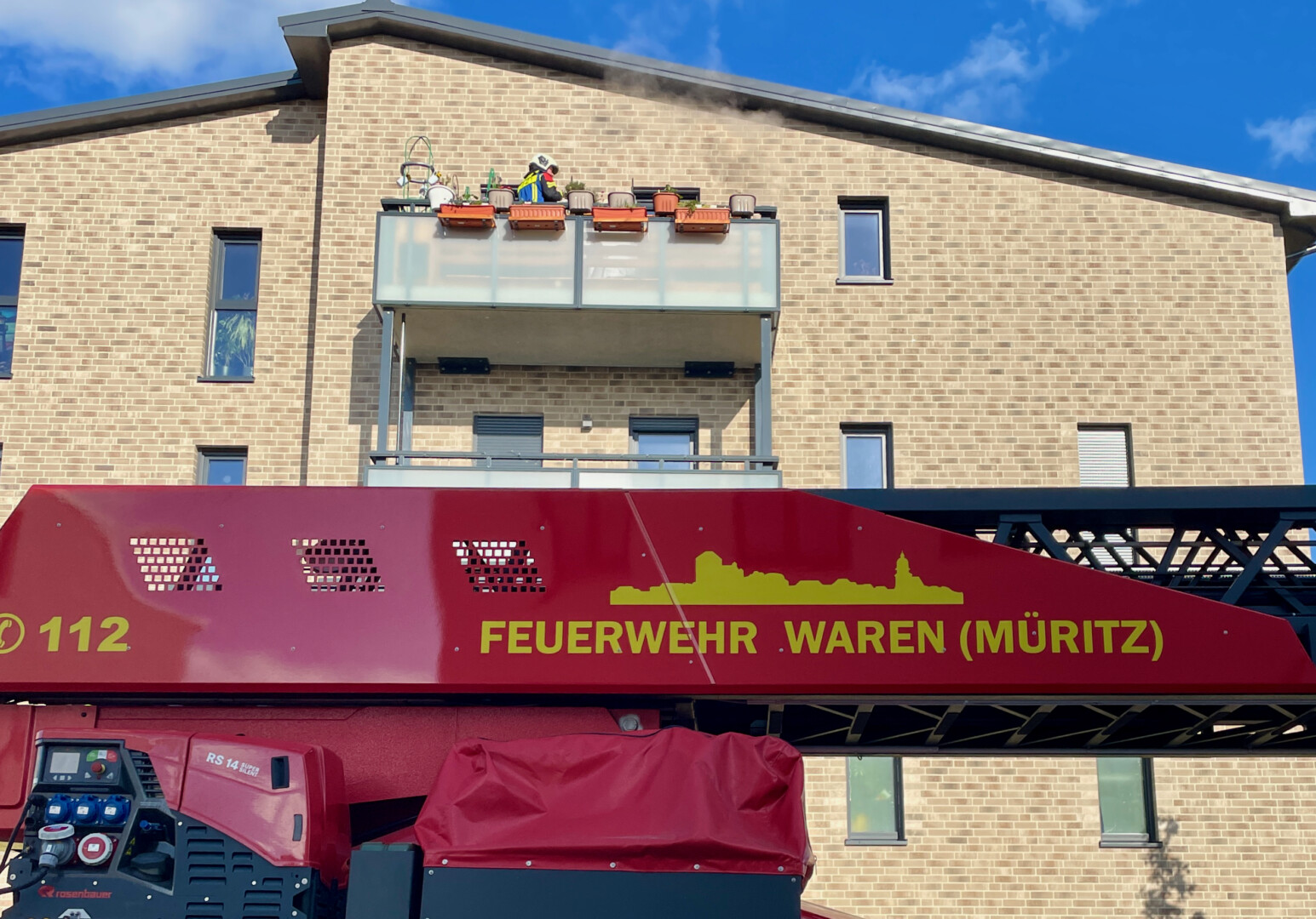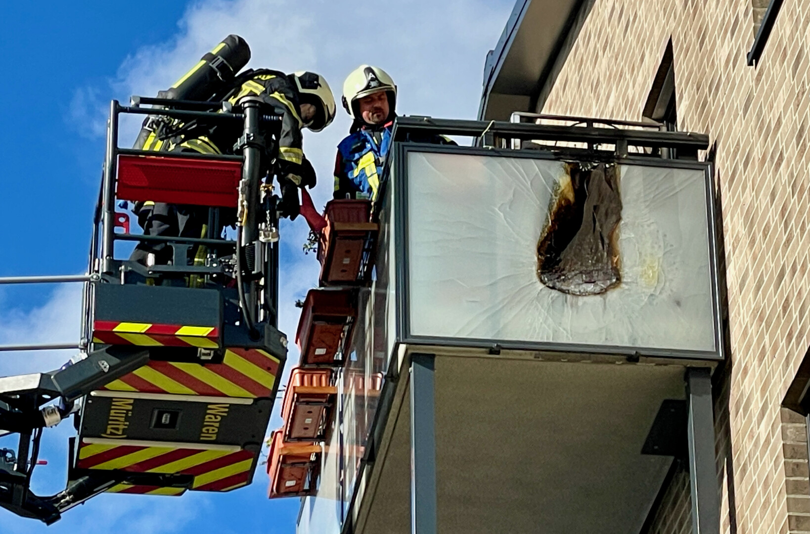Anscheinend wollte man der angekündigten Kälte vorbeugen. In dem kleinen Balkongarten befand sich laut Polizei auch Torf, und der gilt als leicht entzündlich. So nahm das Unheil seinen Lauf. Ein Feuerwehrmann, der privat in der Nähe war, eilte sofort zum Ort des Geschehens und hatte Glück, dass gerade jemand mit Schlüssel kam. So konnte er schon mal mit dem Bekämpfen des Brandes beginnen, ehe seine Kameraden der Warener Feuerwehr eintrafen.
