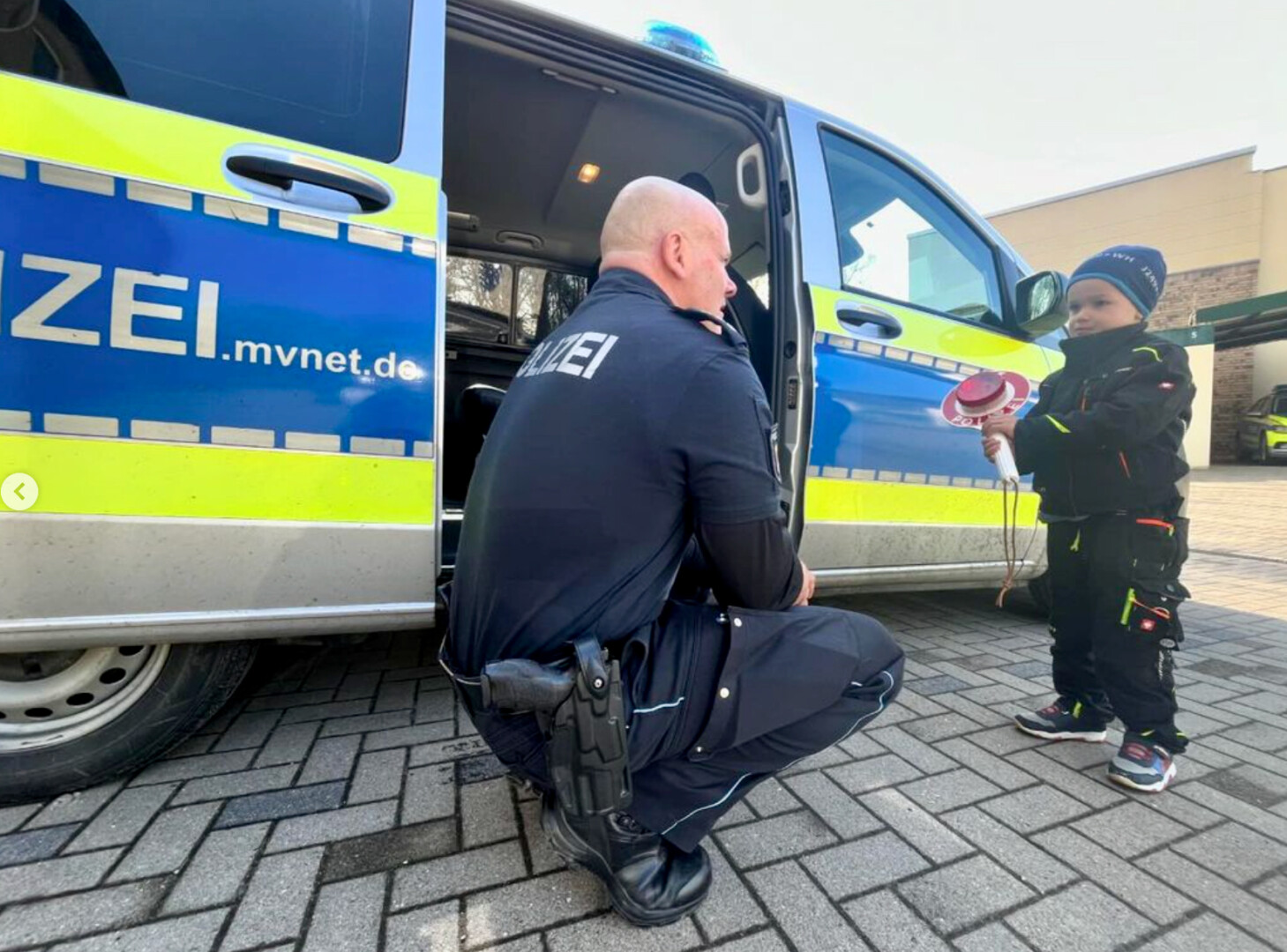 Zum Abend noch eine schöne Wochenend-Geschichte: Eine tolle Abwechslung im Einsatz-Alltag hatte unlängst Jan Dittrich vom Warener Polizeirevier. Der kleine vierjährige Noah weiß heute schon ganz genau, dass er später Polizist werden möchte. Er läuft fast täglich begeistert am Warener Revier und an den Streifenwagen vorbei. Also hat seine Mama Jessy kurzerhand einfach mal gefragt, ob sie mit ihm vorbeikommen darf. Sie durfte.
