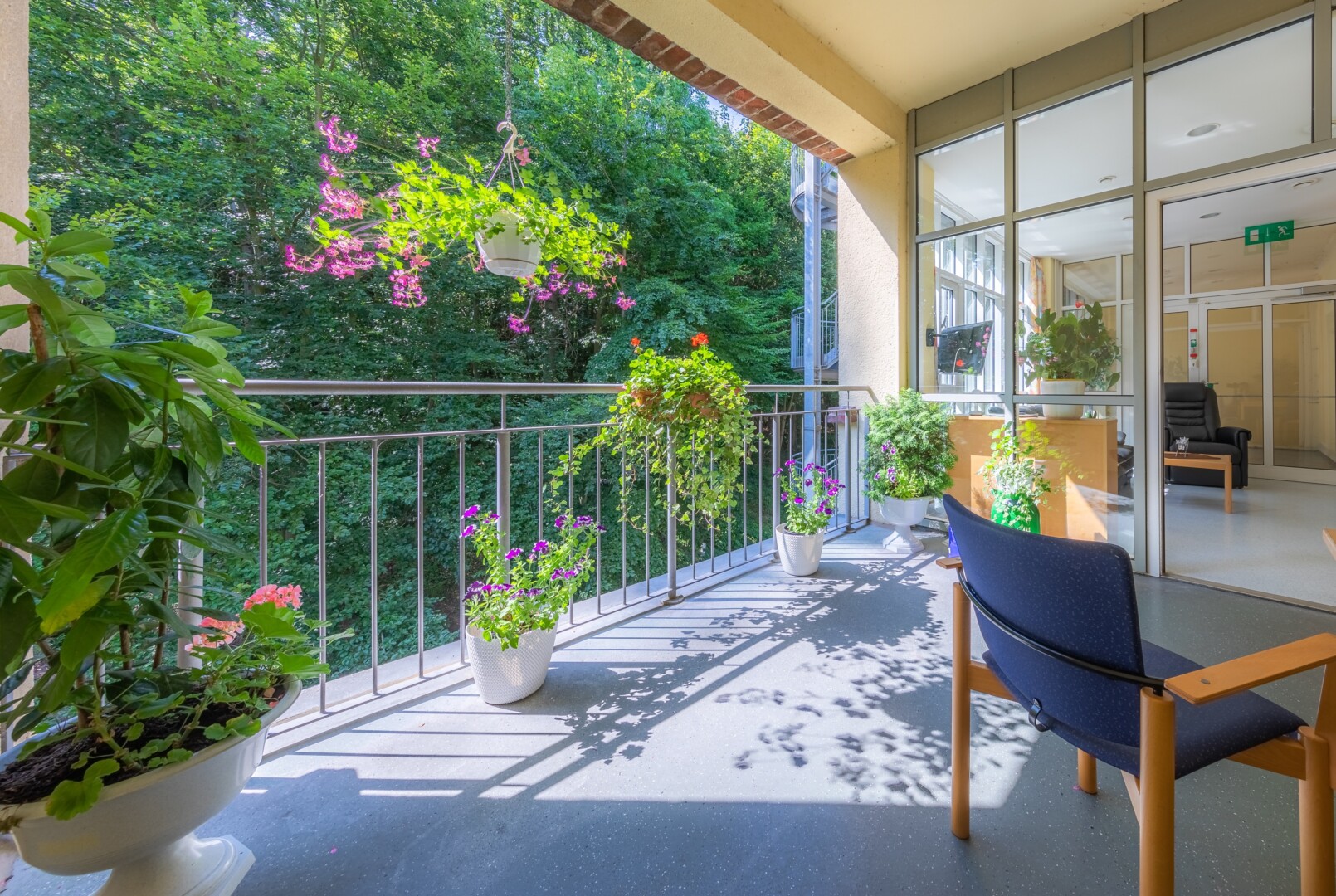 Bild oben: Der Balkon der Palliativstation lädt zum Erholen und Verweilen ein.