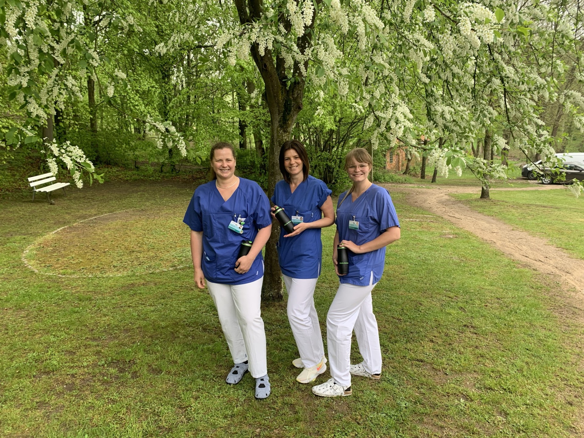 Zum gestrigen Internationalen Tag der Pflege gab’s für die Mitarbeiter der Klinik Amsee kleine Überraschungen. Die neue Klinikdirektion Katharina Paetow hat die Beschäftigten zum einen mit Thermobechern erfreut, zum anderen können sich die Mitarbeiter auf Brunch-Buffets freuen. Dass die Wahl ausgerechnet auf Thermobecher gefallen ist, hat seinen Grund: So können die Frauen und Männer ihren Tee oder Kaffee endlich einmal heiß trinken. Denn dazu kommen sie im normalen Klinikalltag mitunter gar nicht.