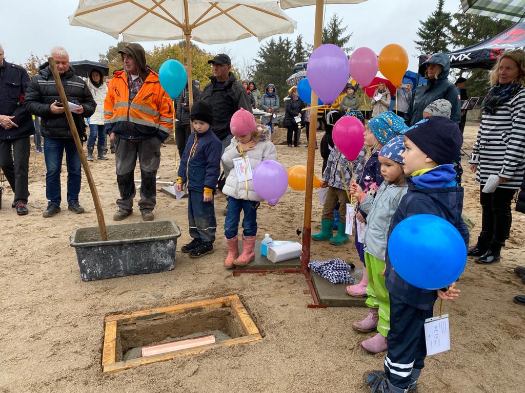 Nach dem Spatenstich vor wenigen Wochen geht’s zügig weiter: In der Gievitzer Straße entsteht die neue Kita „Kleine Strolche“ für insgesamt 105 Kinder, jetzt ist der Grundstein feierlich gelegt worden. Natürlich waren die Knirpse der Diakonie-Kita mit dabei und haben fleißig geholfen.