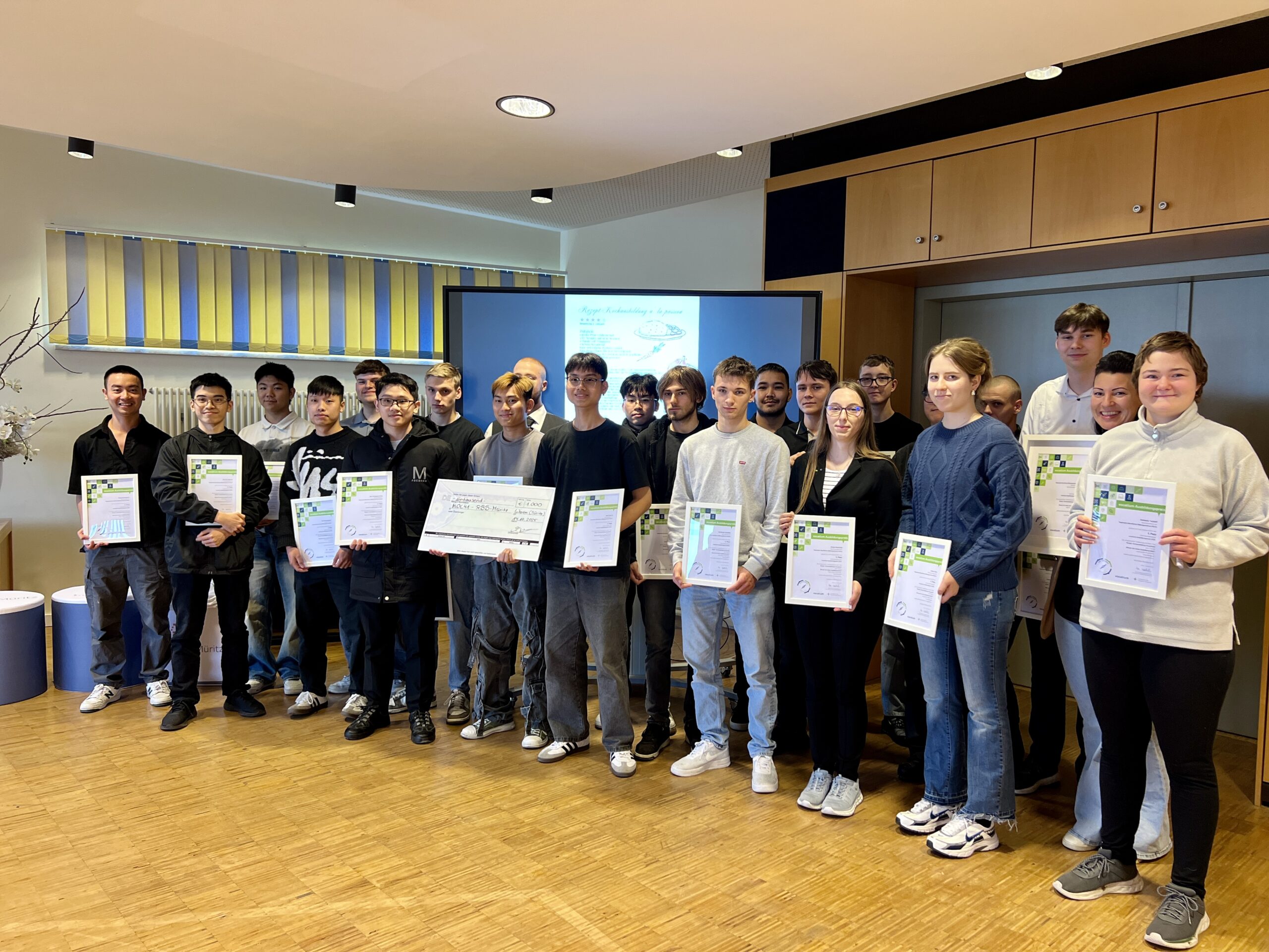 Große Freude am Regionalen Beruflichen Bildungszentrum Müritz (RBB): Die Klasse KOC41 (2. Ausbildungsjahr der Köche) hat beim bundesweiten Vocatium Ausbildungspreis 2025 den 3. Platz belegt und sich damit gegen rund 400 Einsendungen durchgesetzt. Für diese Leistung erhielt die Klasse ein Preisgeld von 1.000 Euro. Der Wettbewerb stand unter dem Motto „Warum ich meine Ausbildung liebe“ und lud Azubis bundesweit ein, kreativ über ihre Motivation, ihre berufliche Identität und ihren Ausbildungsalltag zu reflektieren. Die Kochklasse von der Müritz überzeugte die Jury mit einem originellen Flyer im Rezeptformat, der die Leidenschaft und den Teamgeist der Auszubildenden humorvoll und professionell zugleich widerspiegelte.