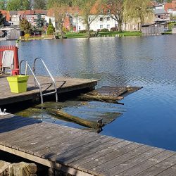Bei Klaus Gebhardt in Malchow ist heute einer vorbei geschwommen. Er hat ihn gesichert und die Wasserschutzpolizei informiert, damit nicht noch ein Boot mit dem Steg kollidiert.