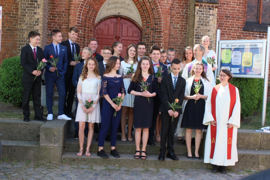 Wir gratulieren ganz herzlich: Am heutigen Pfingstsonntag wurden in einem Festgottesdienst in der St. Georgenkirche 19 Jugendliche von Pastorin Anja Lünert und Pastor Marcus Wenzel konfirmiert.