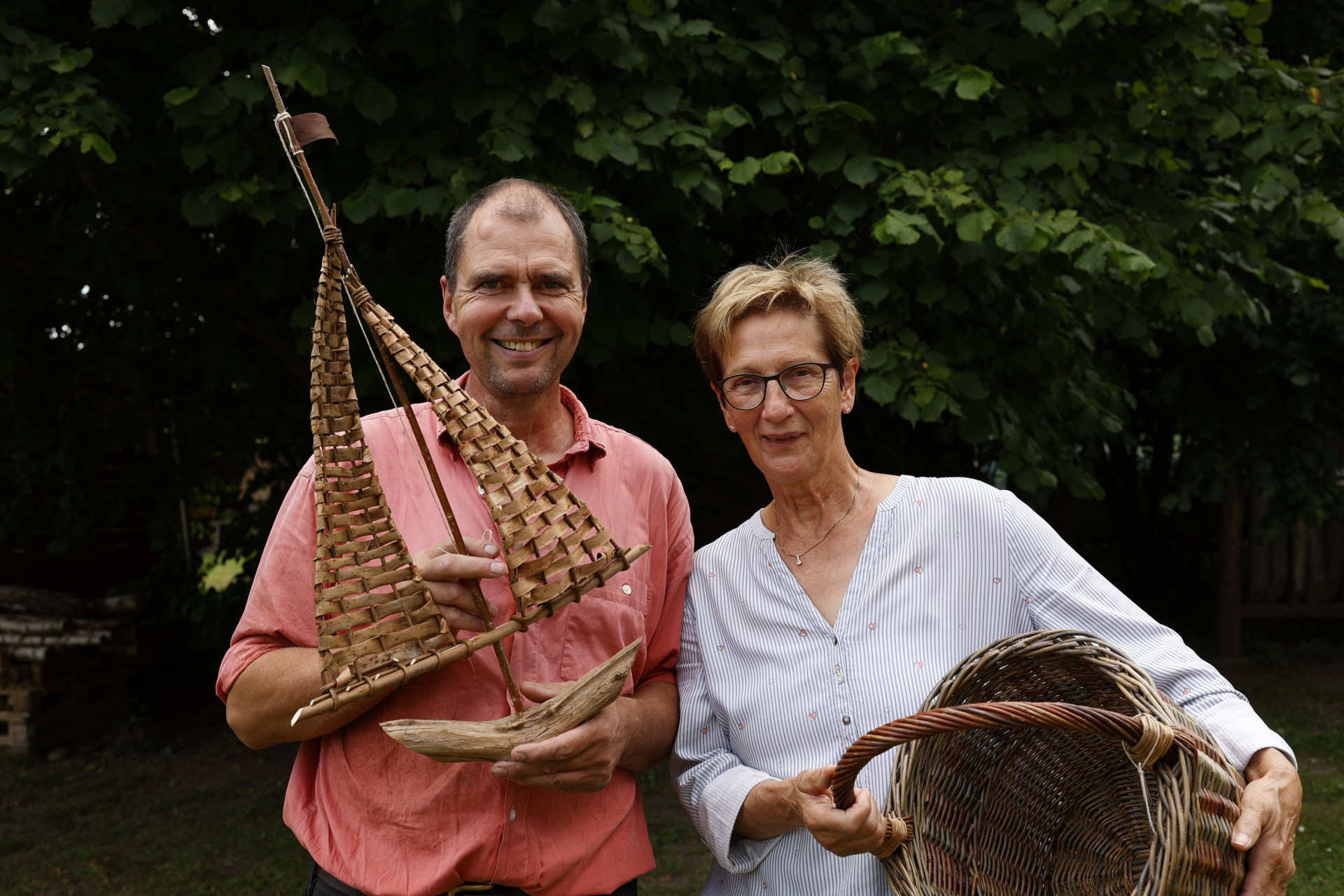 Es ist wohl eines der ältesten Handwerke der Menschheit: die Korbflechterei. Seit Jahrtausenden nutzen die Menschen diese alte Kunst, um Gefäße, Unterkünfte und Gebrauchsgegenstände für den Alltag zu fertigen. Wasserdichte Körbe wurden in der Steinzeit sogar zum Kochen genutzt. Inzwischen haben Gegenstände aus Kunststoff und Metall diese Funktion übernommen – in Bezug auf Ressourcenverbrauch und Entsorgung durchaus eine bedenkliche Entwicklung. Dass Korbflechterei auch heute noch praktiziert wird und dabei aus heimischen Rohstoffen nicht nur Praktisches, sondern auch Schönes entsteht, zeigt die neue Sonderausstellung im Karower Meiler.
