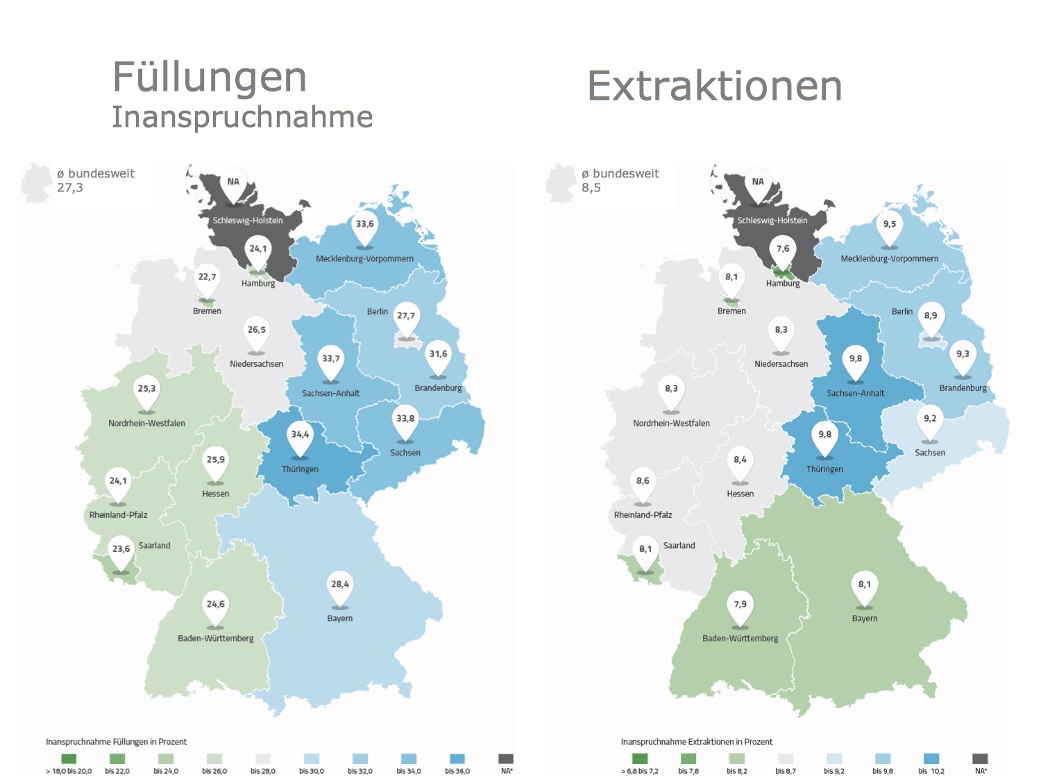Die Ergebnisse des aktuellen Zahngesundheitsatlasses machten grundsätzlich zwei Tendenzen deutlich. Zum einen gebe es in vielen Versorgungsbereichen der Zahnmedizin Ost-West-Unterschiede. Zum anderen scheine ein Stadt-Land-Gefälle vorzuliegen. Der Unterschied zwischen den östlichen und westlichen Bundesländern zeige sich besonders bei dem Anteil der Bevölkerung, der zum Zahnarzt geht. Die Sachsen sind hier den Ergebnissen zufolge Spitzenreiter (77,1 Prozent), die Saarländer hingegen Schlusslicht (65,2 Prozent). „Die Gründe für die Unterschiede kennen wir nicht. Möglich wären tradierte Inanspruchnahmemuster, verschiedene Präventionsaffinitäten und ein unterschiedlicher Stellenwert des Bonussystems“, betonte Studienautor Prof. Dr. Michael Walter von der Poliklinik für Zahnärztliche Prothetik an der TU Dresden.