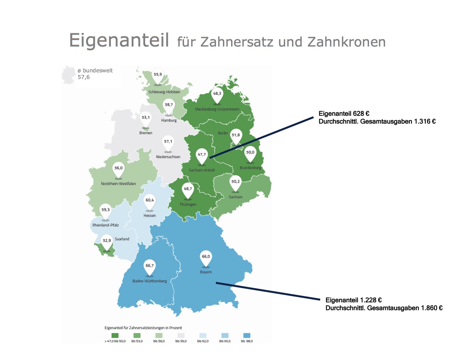 Zahnersatz je nach Region zwischen 1.274 Euro und 1.877 Euro