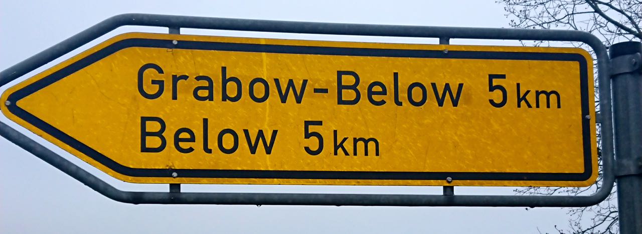 Und das wird dann auch klar, wenn man zurück Richtung Wredenhagen fährt: Dort stehen auf jeder Fahrbahnseite Richtungsschilder, die einem klar sagen: Nach Below geht es 5 Kilometer und nach Grabow-Below auch 5 Kilometer.