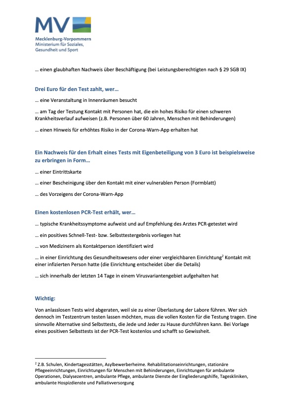 Hier eine Übersicht zur Testverordnung: