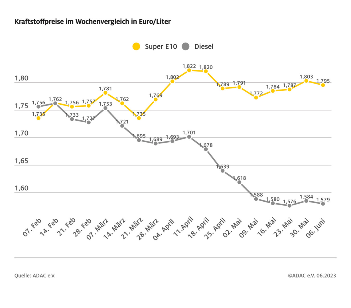 Die Entscheidung zur Drosselung der Ölfördermenge bei der Opec+-Tagung am vergangenen Sonntag hat bisher keinen nennenswerten Einfluss auf die Spritpreise hierzulande. Laut aktueller ADAC Auswertung der Kraftstoffpreise in Deutschland melden beide Sorten einen leichten Rückgang. Der Preis für einen Liter Super E10 ging um 0,8 Cent auf 1,795 Euro zurück, Diesel verbilligte sich um 0,5 Cent auf 1,579 Euro. Die Differenz der beiden Sorten bleibt mit 21,6 Cent auf stabilem Niveau.